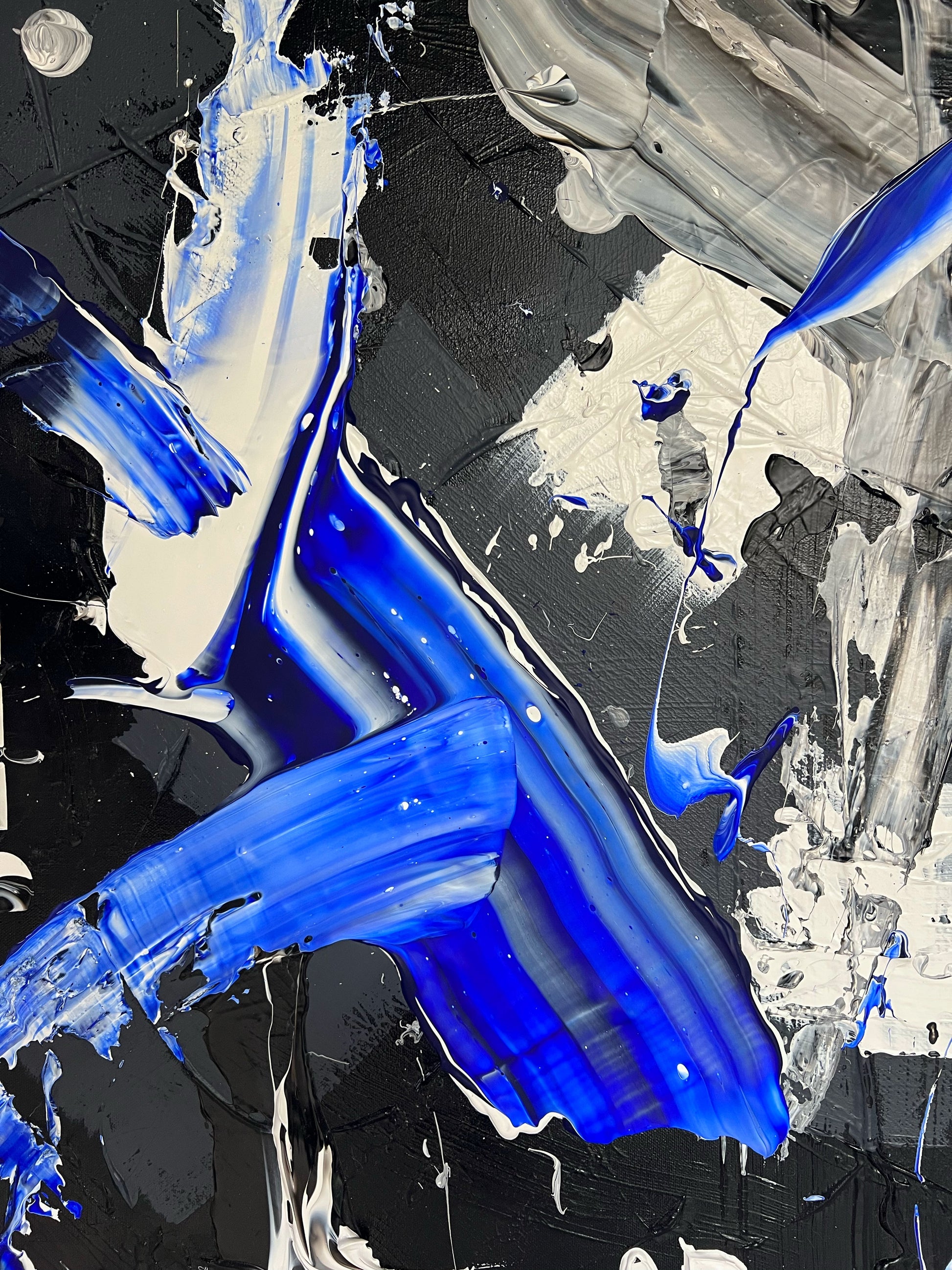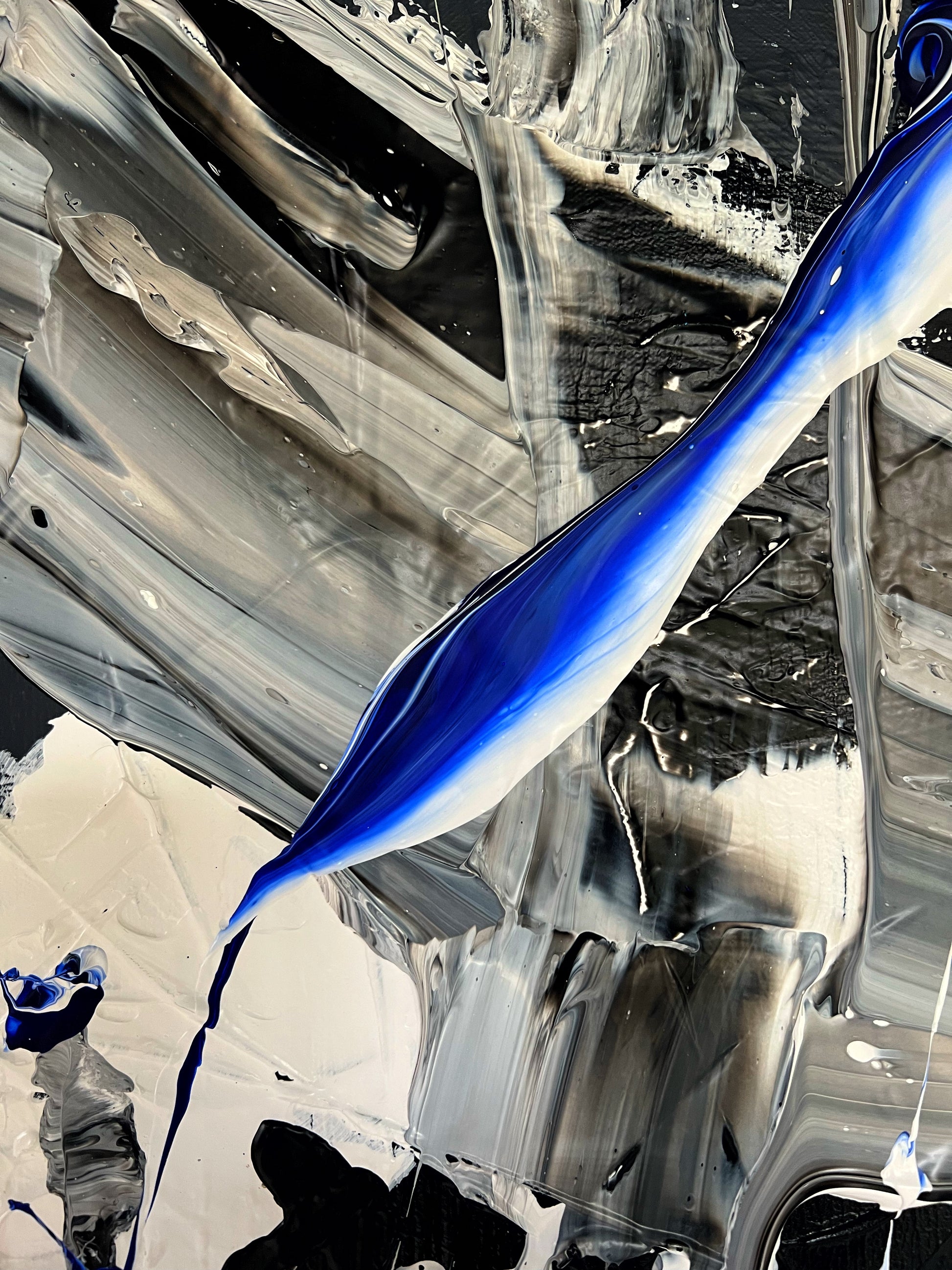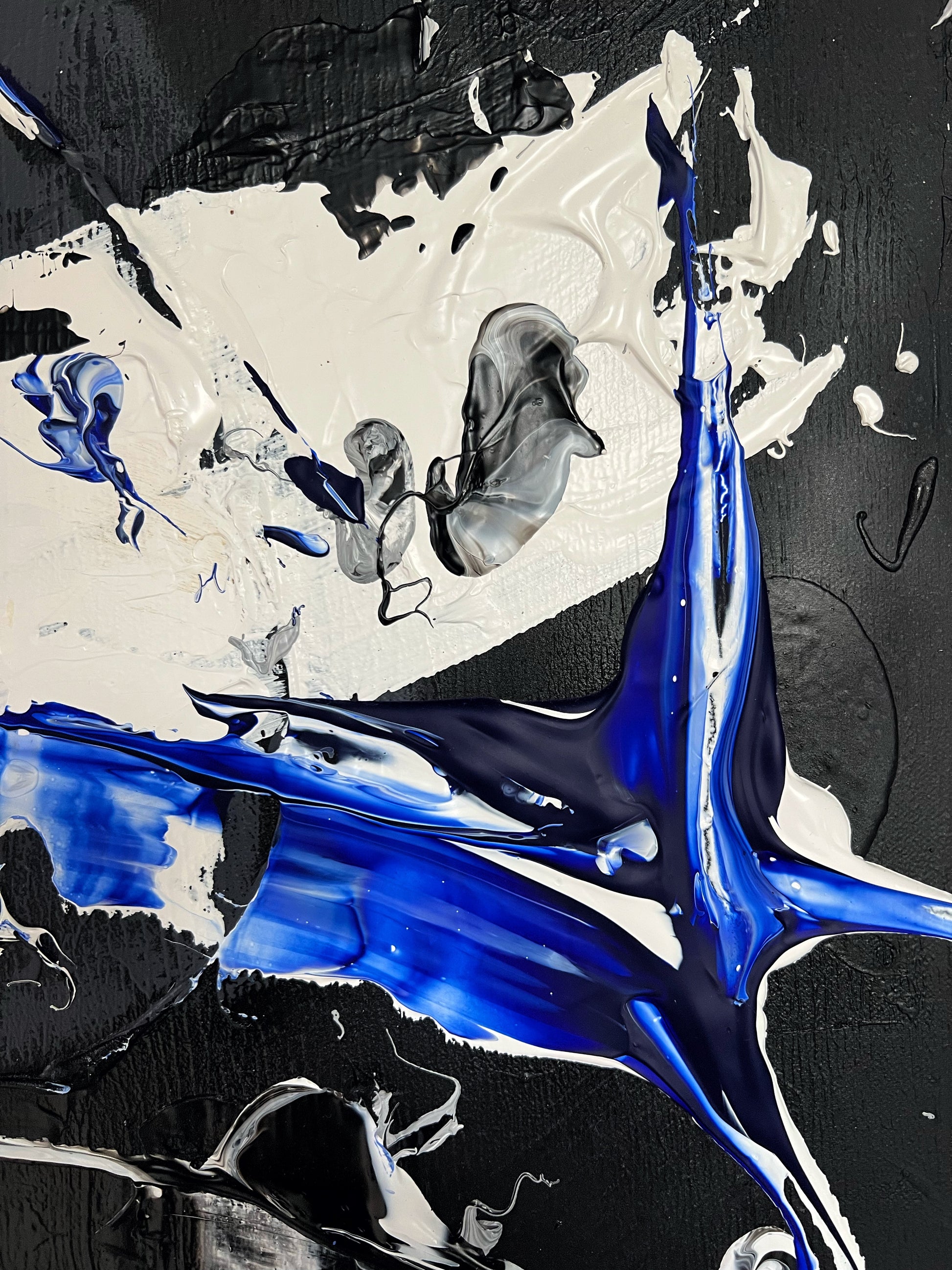 Chaque geste, chaque couche, chaque contraste révèle une énergie. Chaque mouvement génère une surprise, un enchantement ! Créer c’est découvrir, rêver et interpréter. Ces superpositions de peinture, cette recherche permanente d’un équilibre fragile, ces apparitions de formes et de couleurs inattendues me bouleversent lors de la création ! Des larmes coulent et le bonheur m’envahit