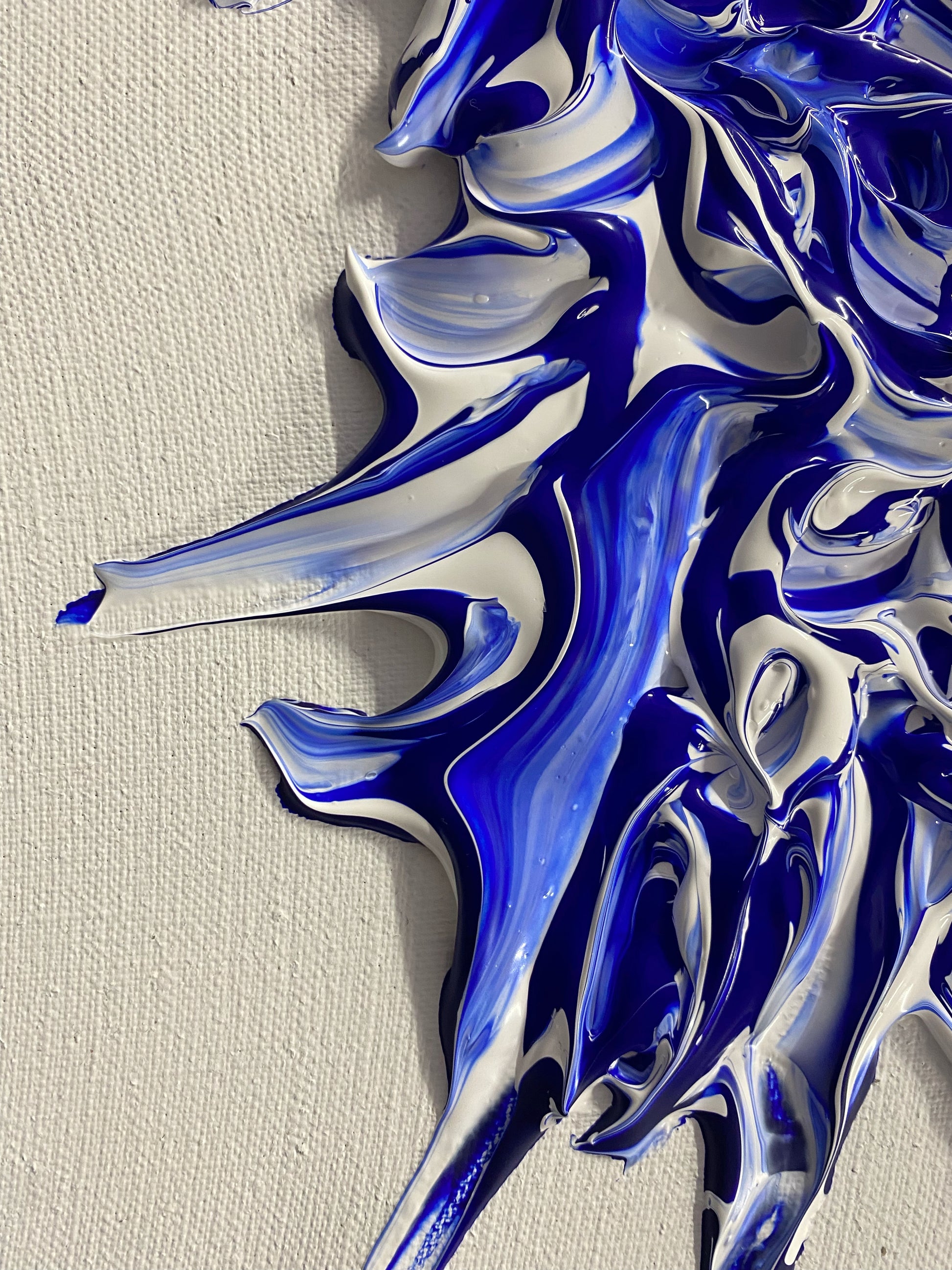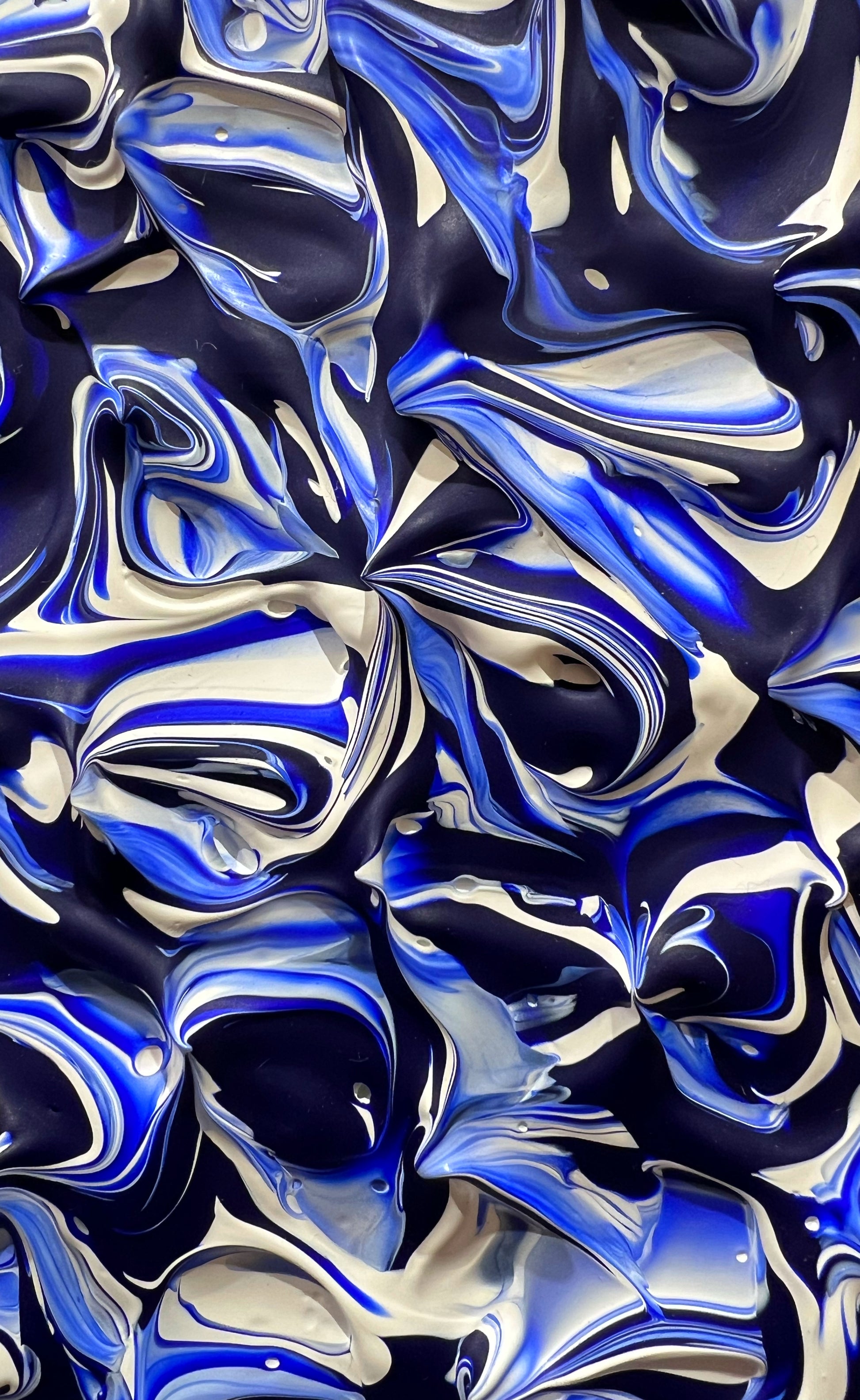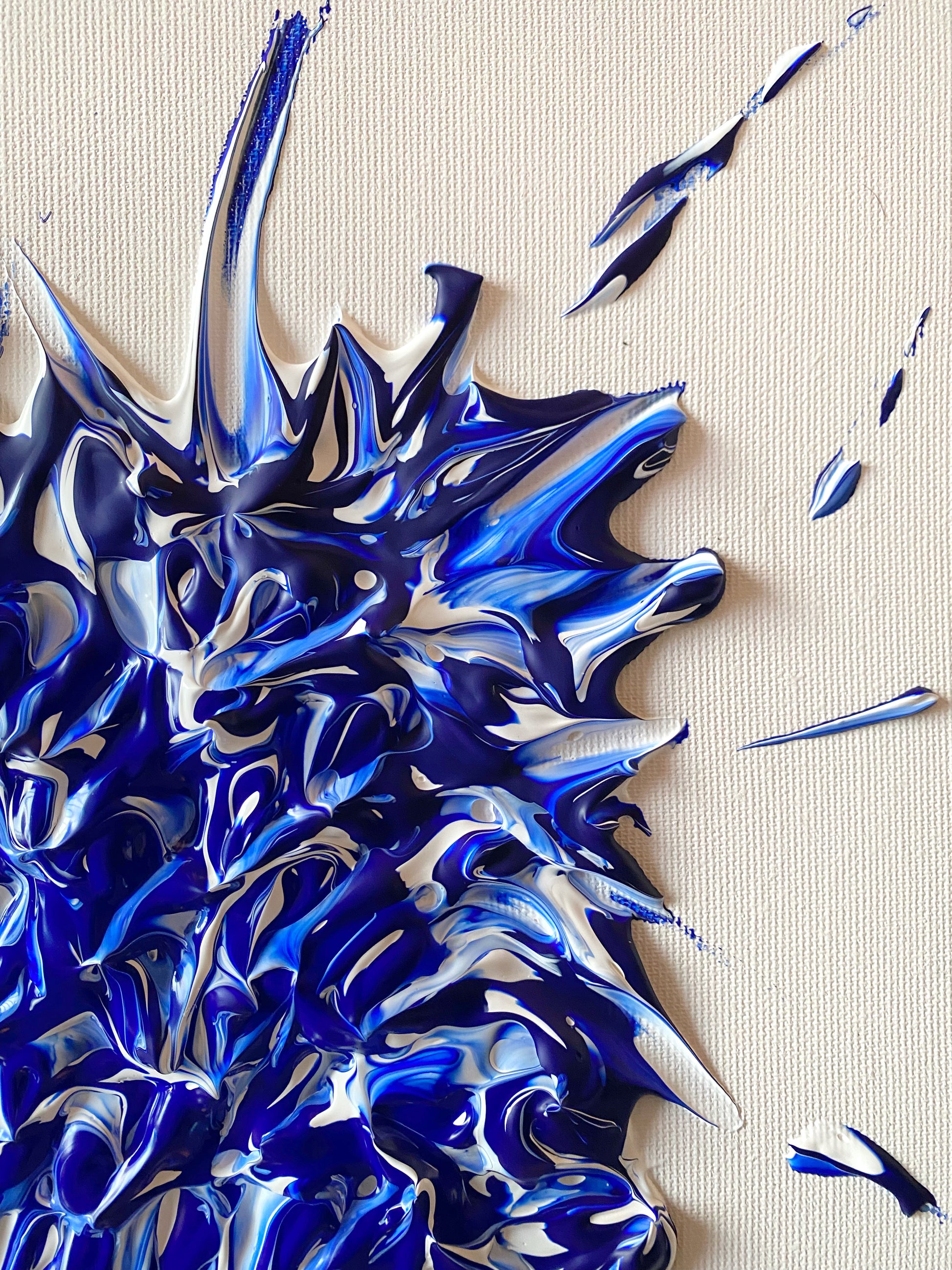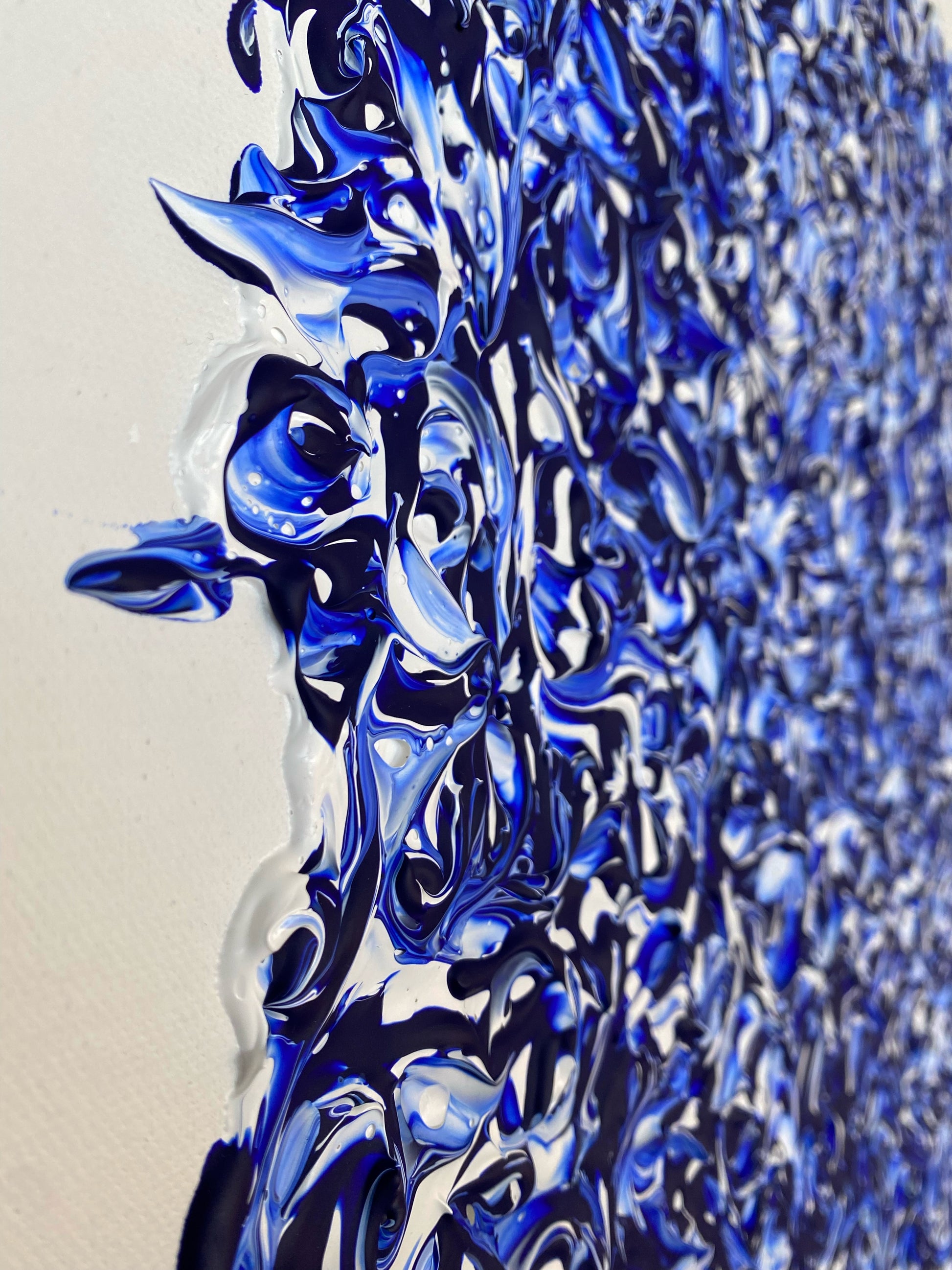 Chaque geste, chaque couche, chaque contraste révèle une énergie. Chaque mouvement génère une surprise, un enchantement ! Créer c’est découvrir, rêver et interpréter. Ces superpositions de peinture, cette recherche permanente d’un équilibre fragile, ces apparitions de formes et de couleurs inattendues me bouleversent lors de la création ! Des larmes coulent et le bonheur m’envahit