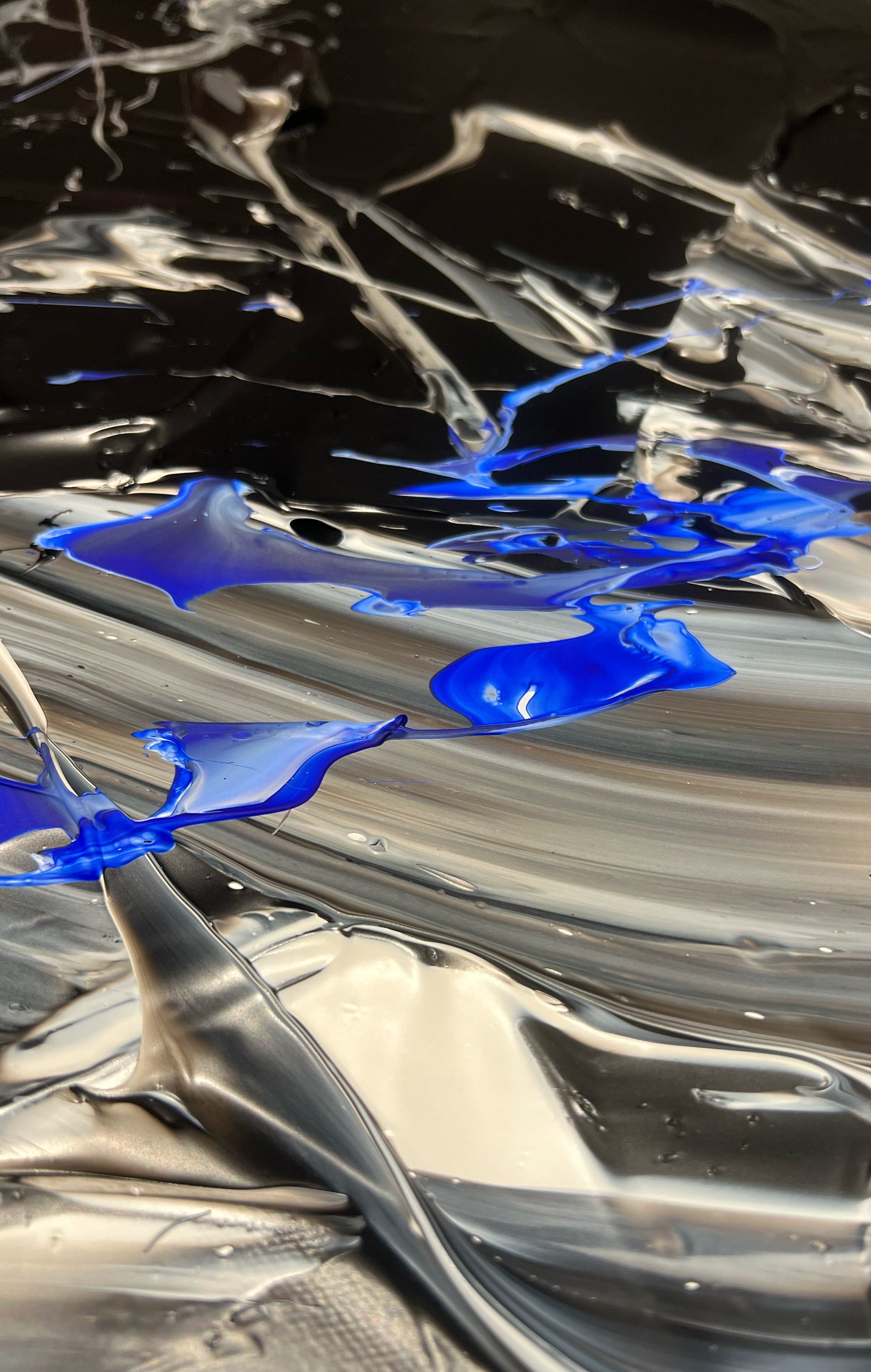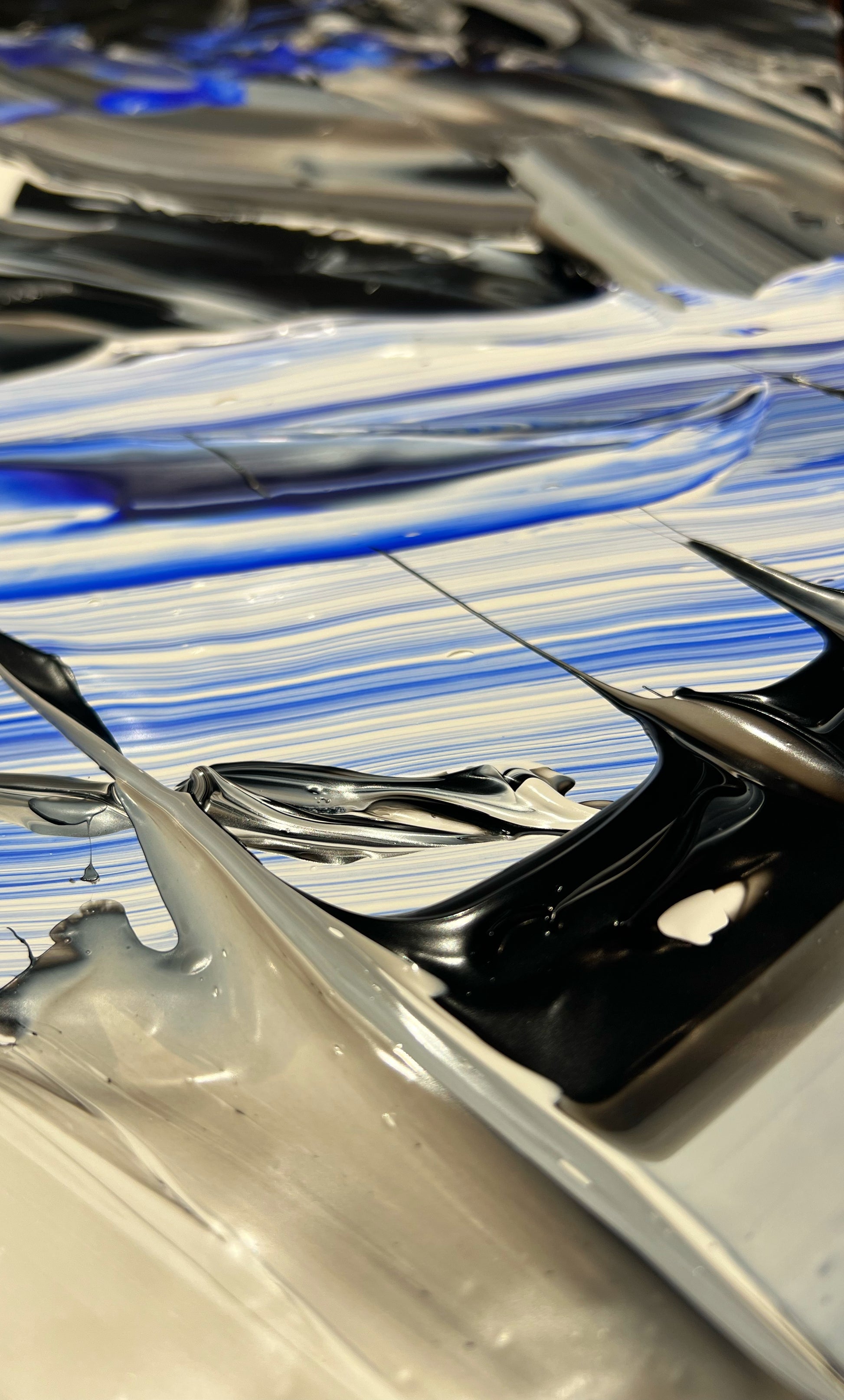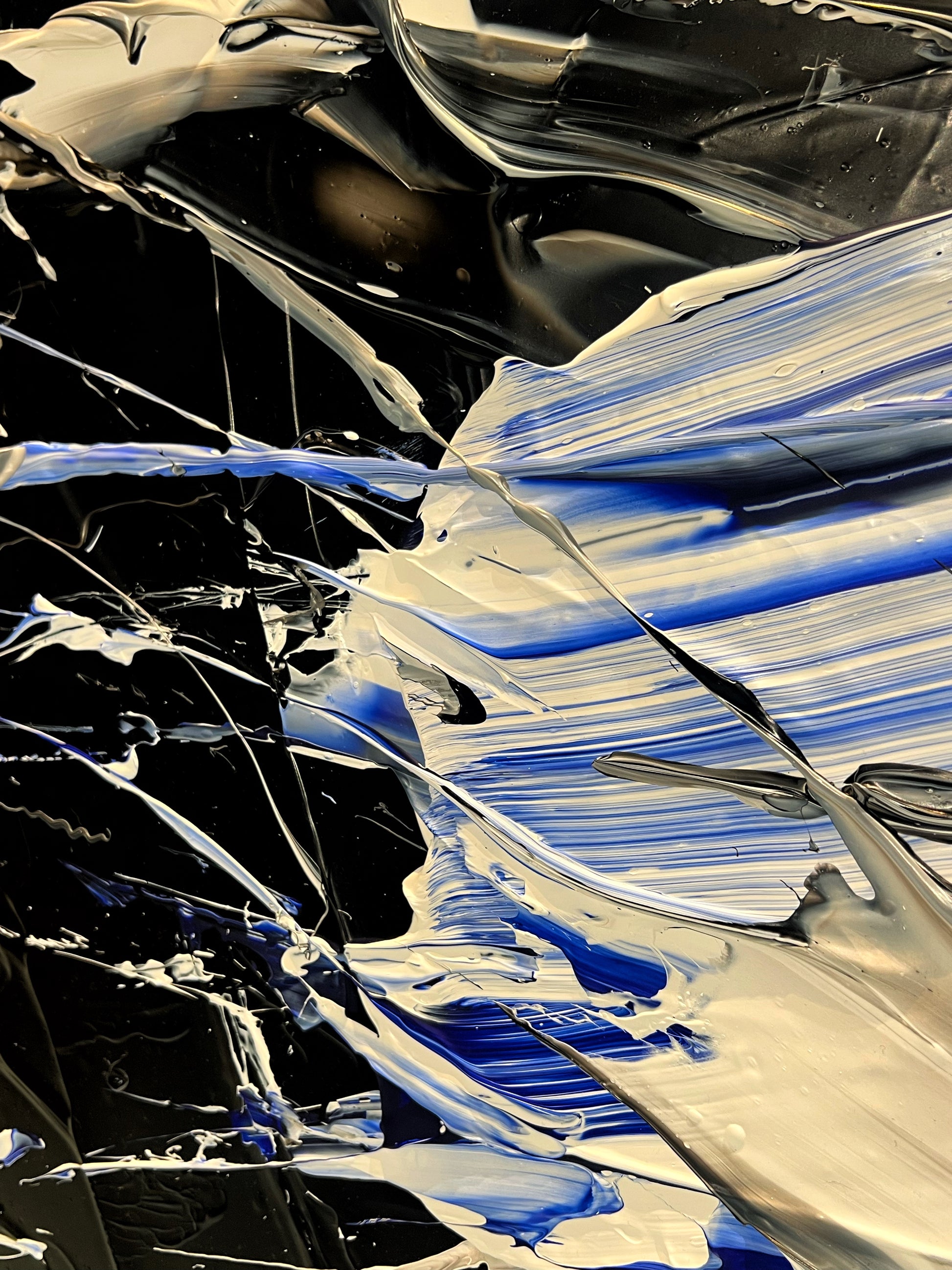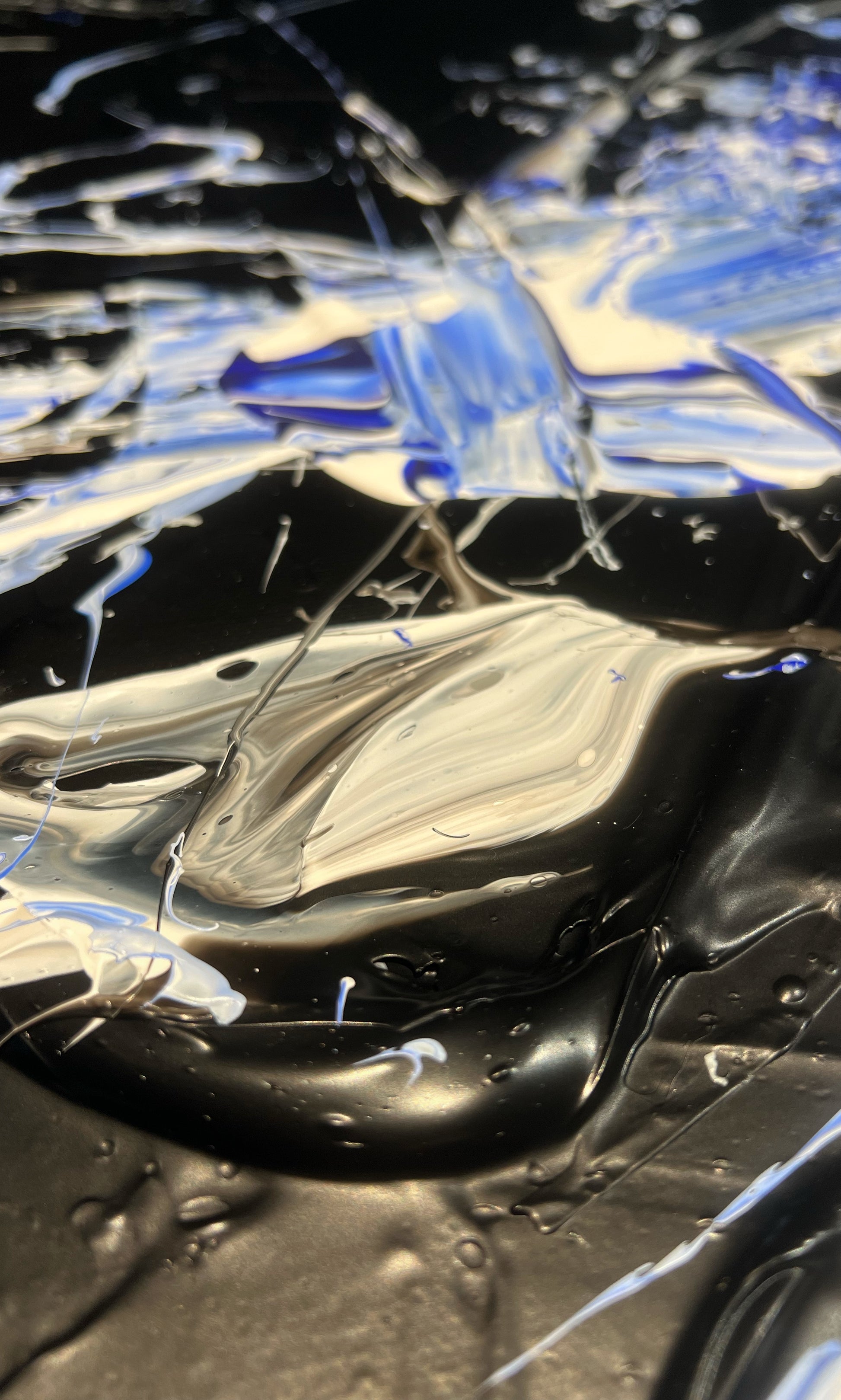 Chaque geste, chaque couche, chaque contraste révèle une énergie. Chaque mouvement génère une surprise, un enchantement ! Créer c’est découvrir, rêver et interpréter. Ces superpositions de peinture, cette recherche permanente d’un équilibre fragile, ces apparitions de formes et de couleurs inattendues me bouleversent lors de la création ! Des larmes coulent et le bonheur m’envahit