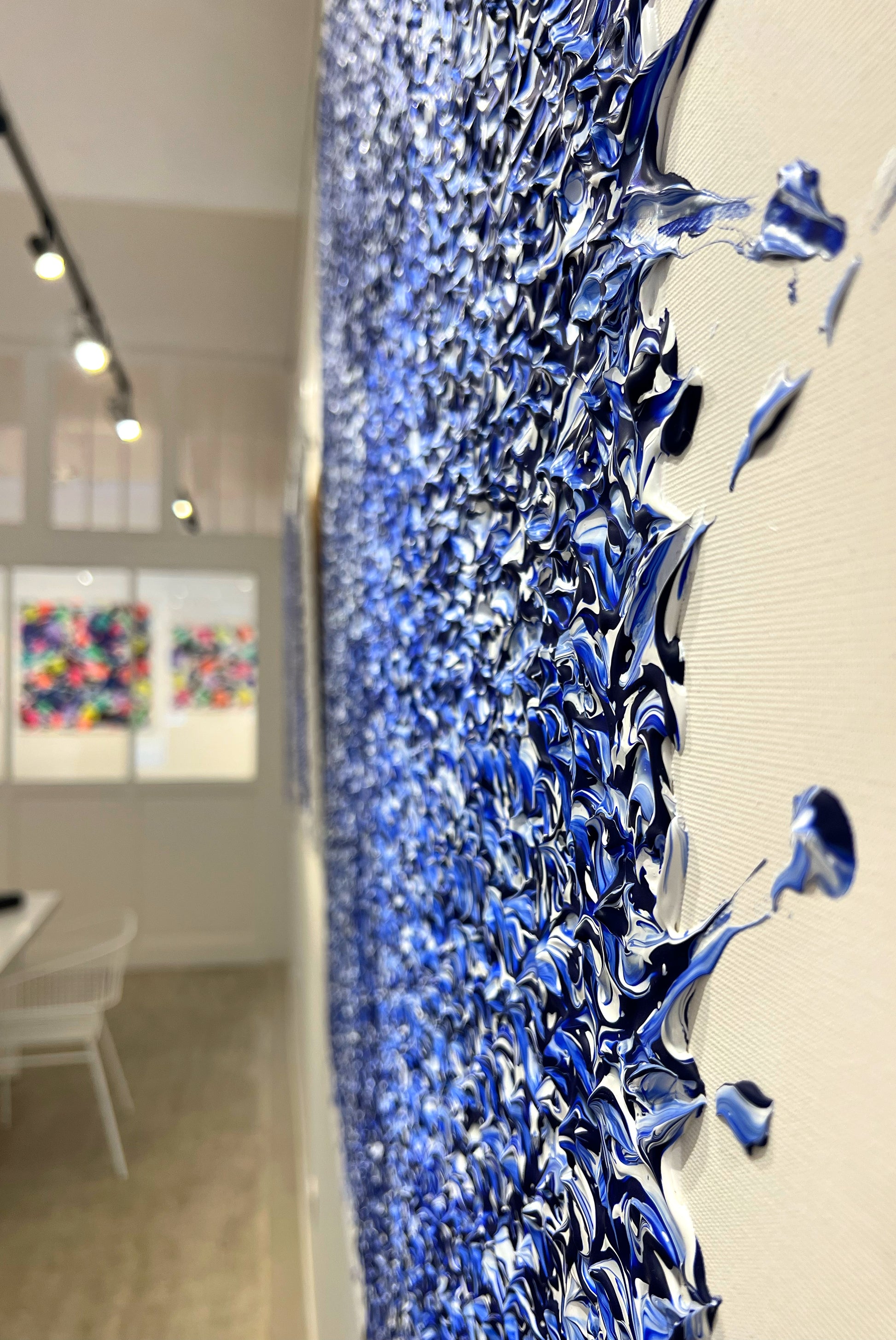 Chaque geste, chaque couche, chaque contraste révèle une énergie. Chaque mouvement génère une surprise, un enchantement ! Créer c’est découvrir, rêver et interpréter. Ces superpositions de peinture, cette recherche permanente d’un équilibre fragile, ces apparitions de formes et de couleurs inattendues me bouleversent lors de la création ! Des larmes coulent et le bonheur m’envahit