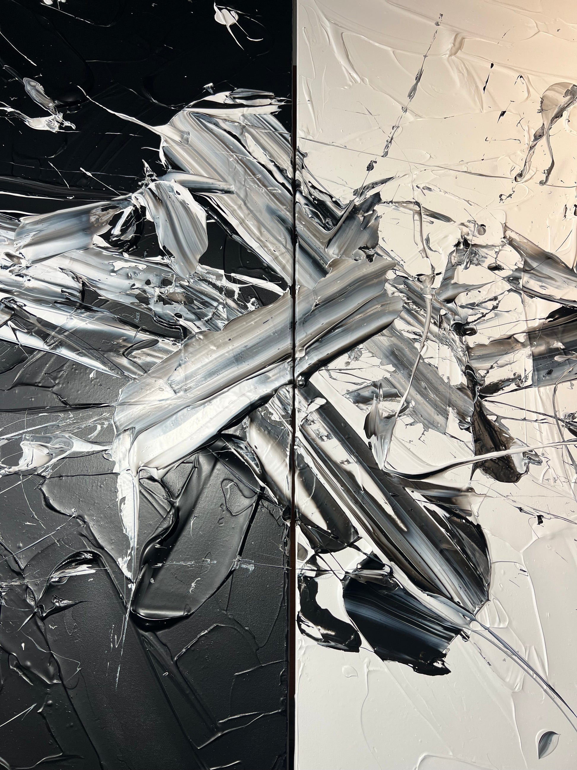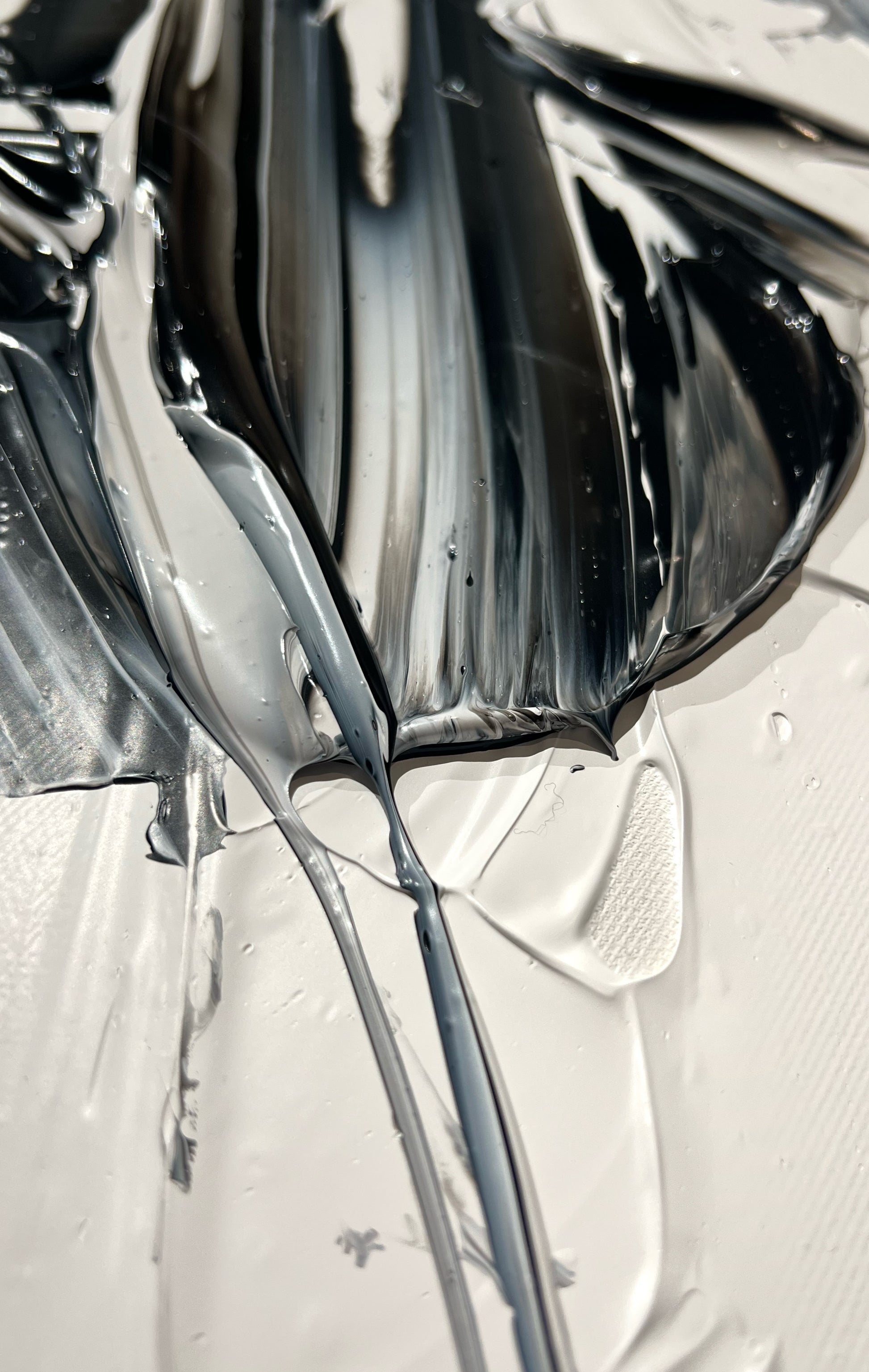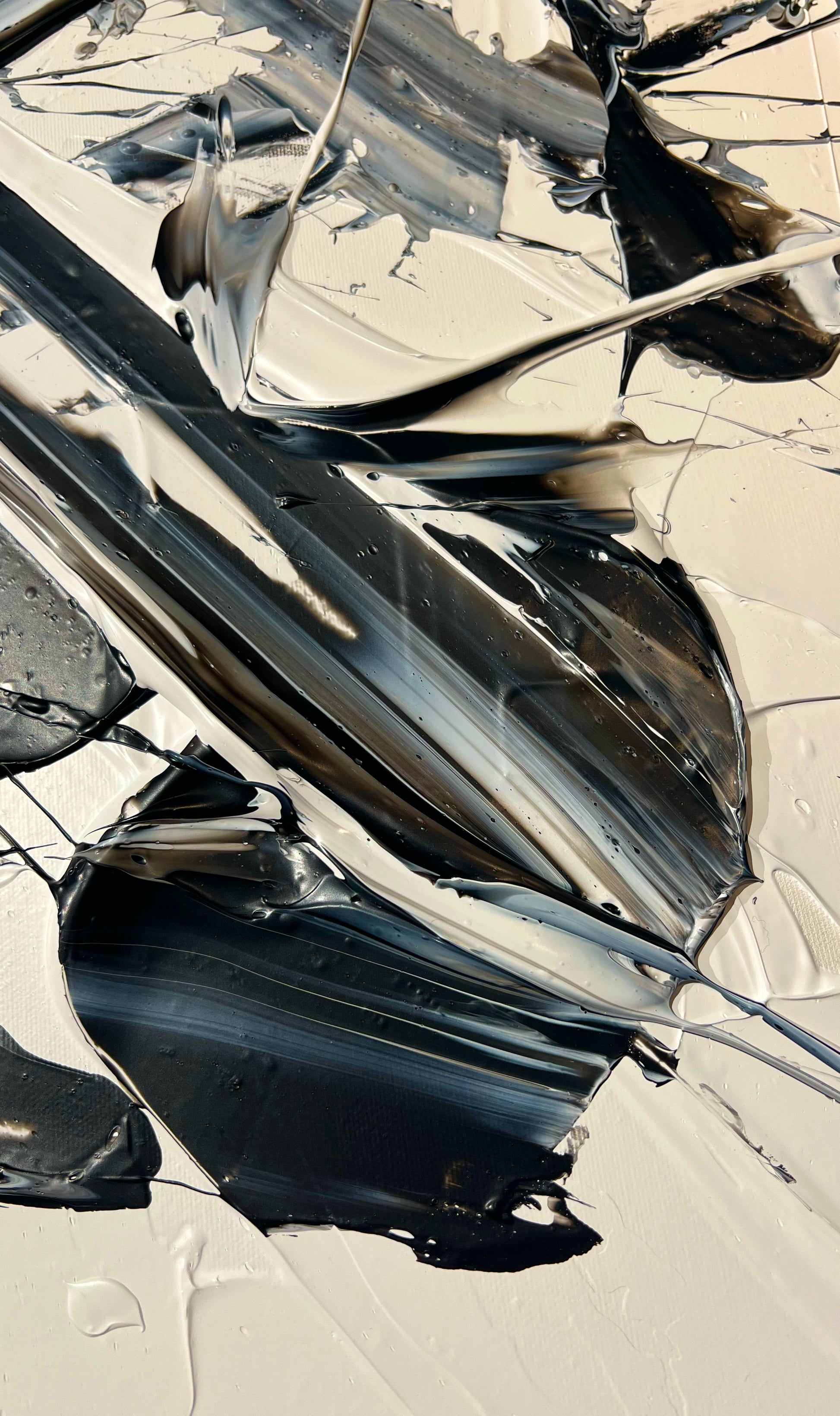 Chaque geste, chaque couche, chaque contraste révèle une énergie. Chaque mouvement génère une surprise, un enchantement ! Créer c’est découvrir, rêver et interpréter. Ces superpositions de peinture, cette recherche permanente d’un équilibre fragile, ces apparitions de formes et de couleurs inattendues me bouleversent lors de la création ! Des larmes coulent et le bonheur m’envahit