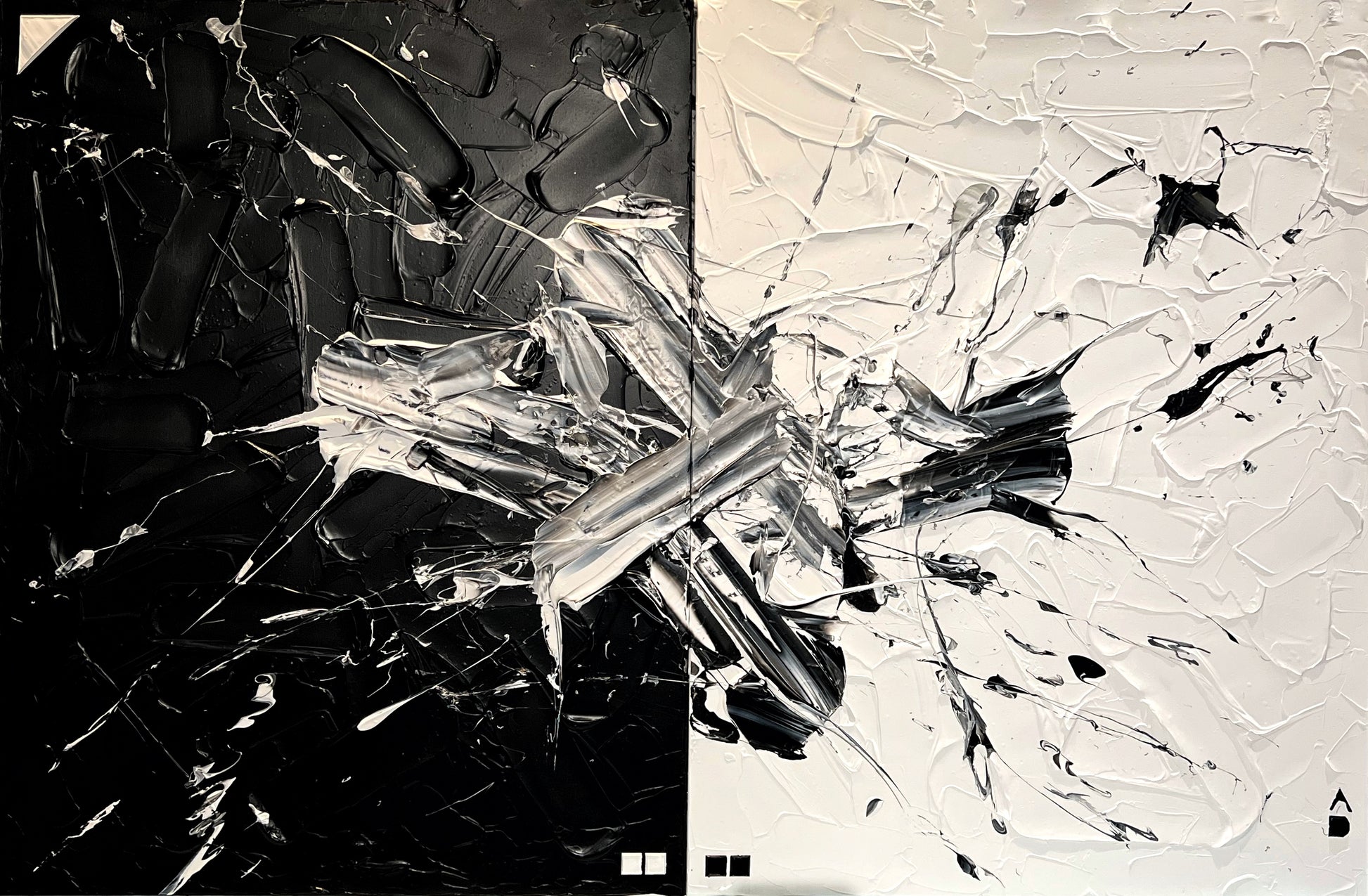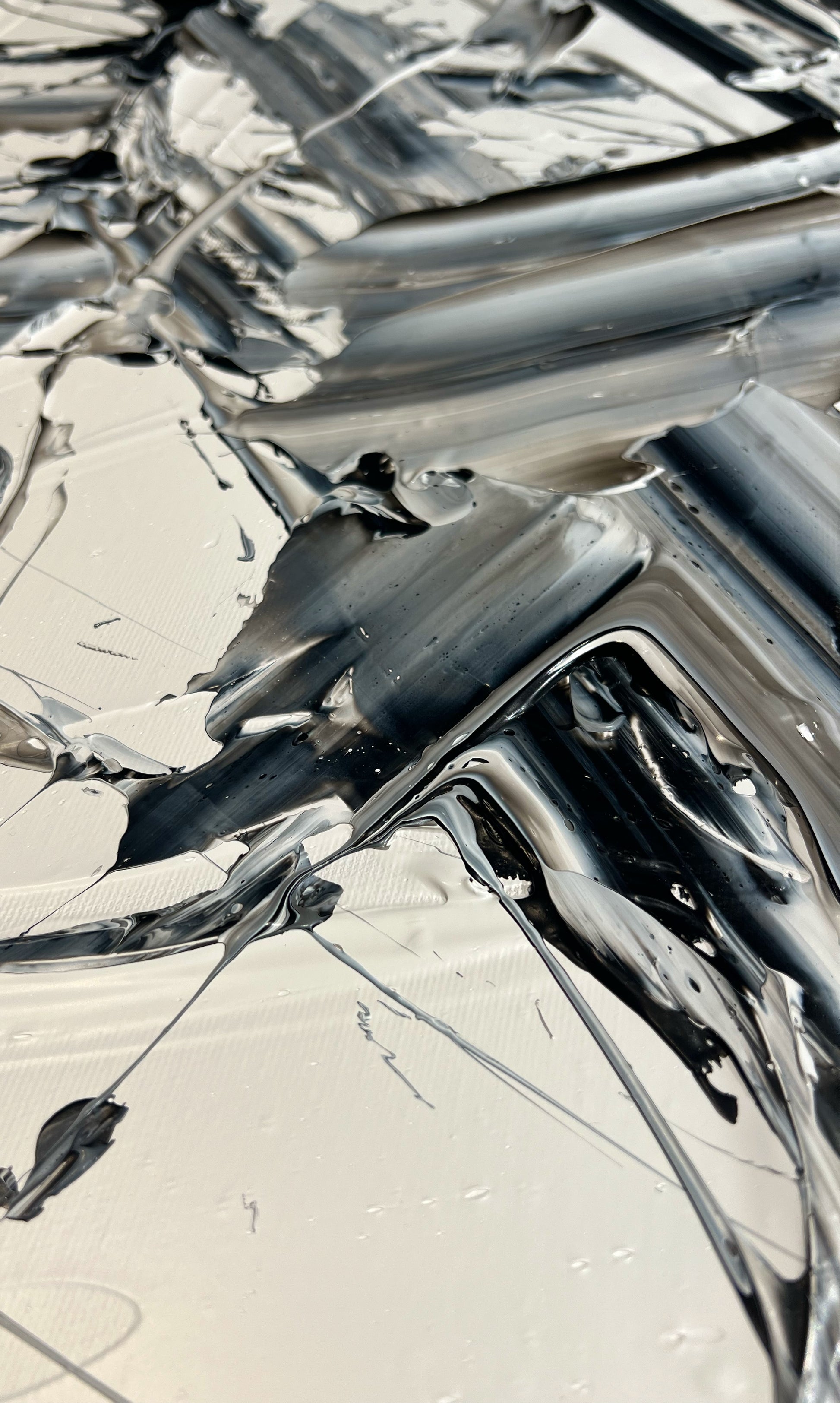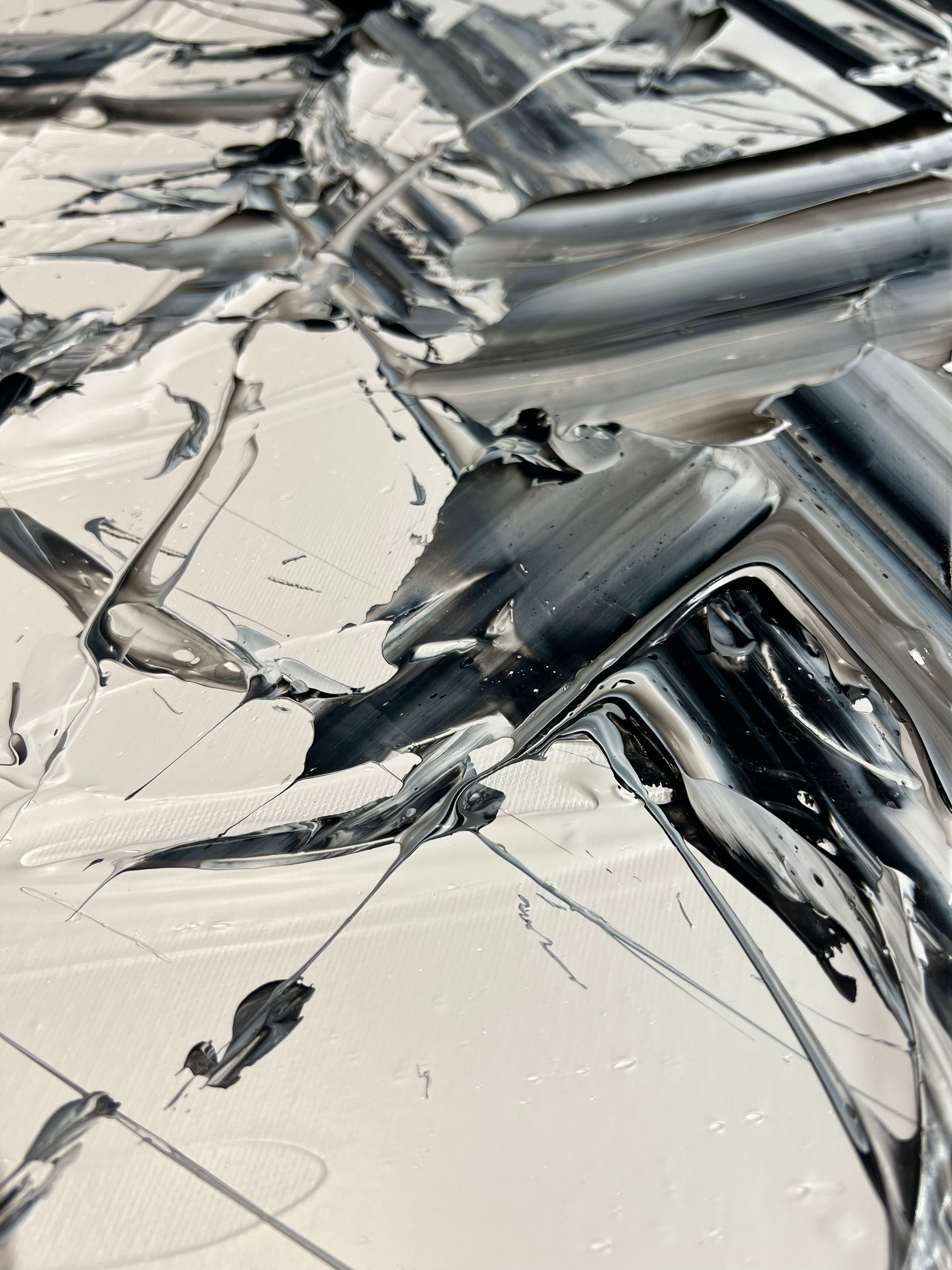 Chaque geste, chaque couche, chaque contraste révèle une énergie. Chaque mouvement génère une surprise, un enchantement ! Créer c’est découvrir, rêver et interpréter. Ces superpositions de peinture, cette recherche permanente d’un équilibre fragile, ces apparitions de formes et de couleurs inattendues me bouleversent lors de la création ! Des larmes coulent et le bonheur m’envahit