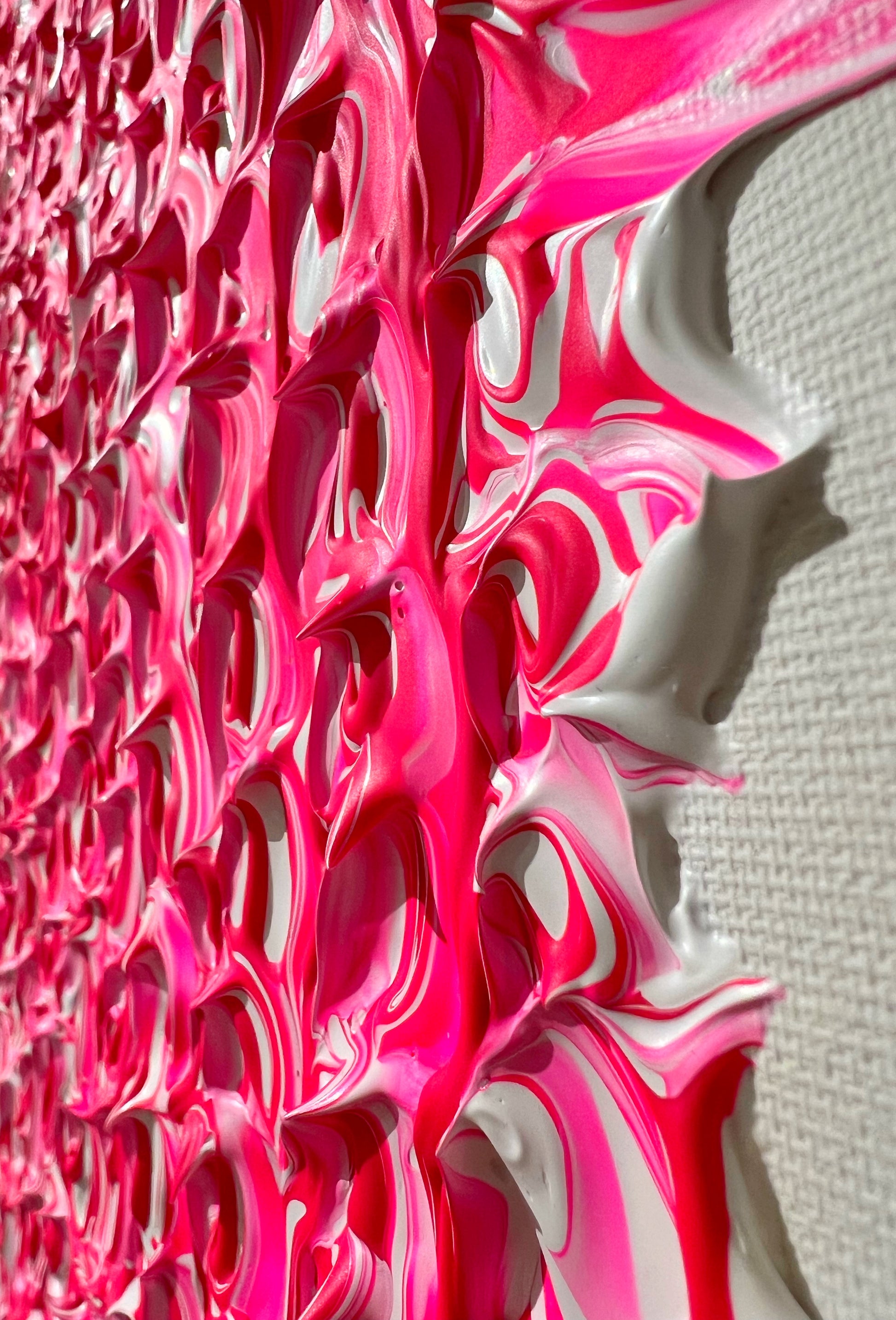 Chaque geste, chaque couche, chaque contraste révèle une énergie. Chaque mouvement génère une surprise, un enchantement ! Créer c’est découvrir, rêver et interpréter. Ces superpositions de peinture, cette recherche permanente d’un équilibre fragile, ces apparitions de formes et de couleurs inattendues me bouleversent lors de la création ! Des larmes coulent et le bonheur m’envahit