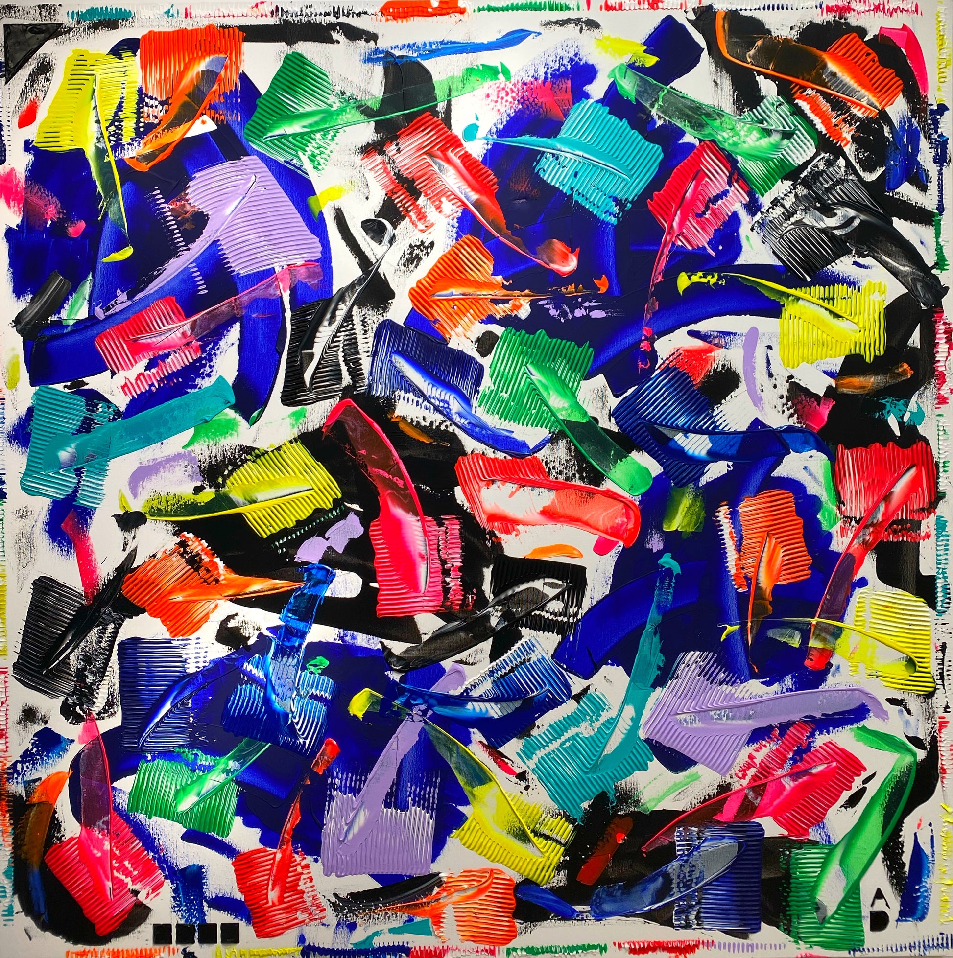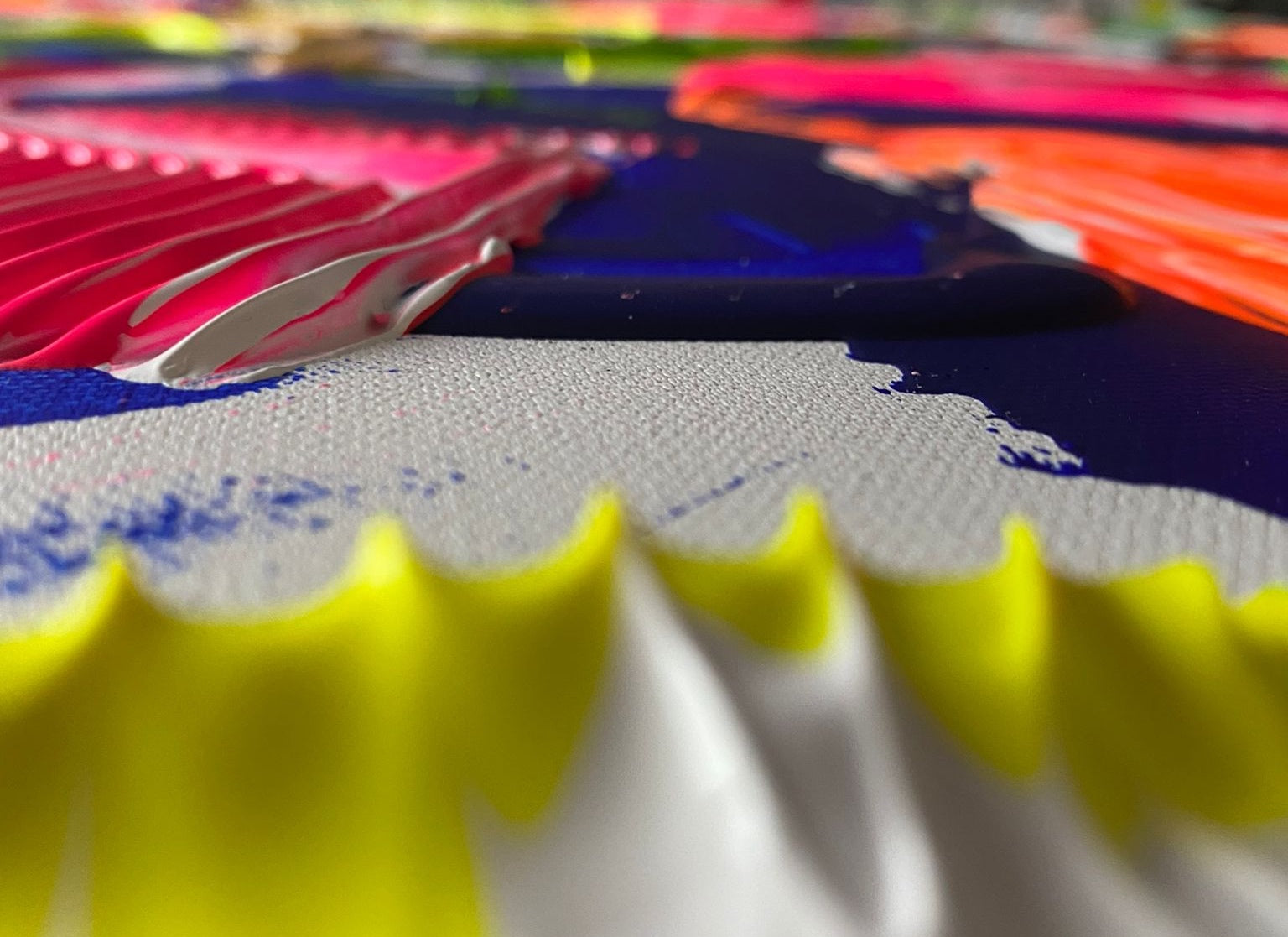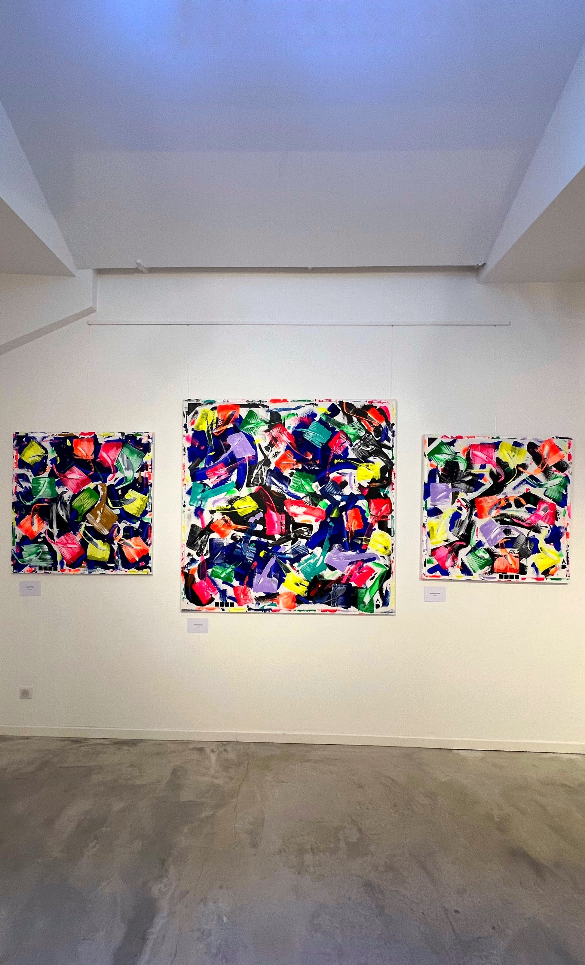 Chaque geste, chaque couche, chaque contraste révèle une énergie. Chaque mouvement génère une surprise, un enchantement ! Créer c’est découvrir, rêver et interpréter. Ces superpositions de peinture, cette recherche permanente d’un équilibre fragile, ces apparitions de formes et de couleurs inattendues me bouleversent lors de la création ! Des larmes coulent et le bonheur m’envahit